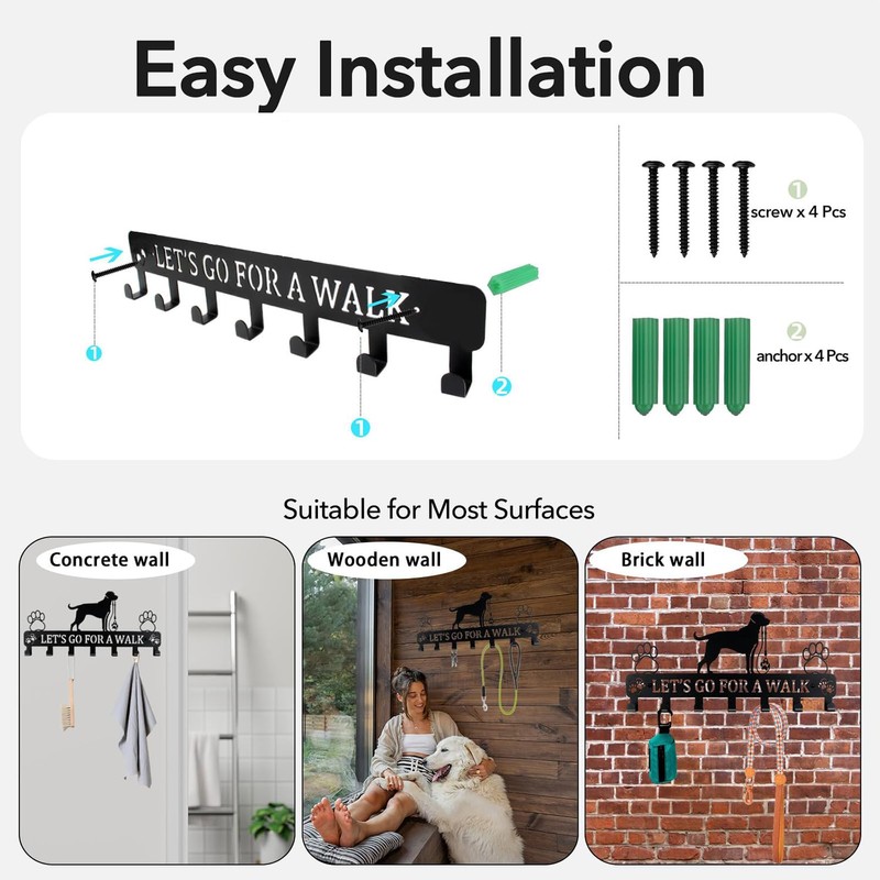 • VERSATILE USE 7 sturdy hooks for leashes, collars, keys or accessories, great for everyday organization