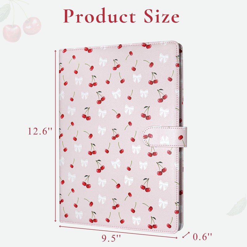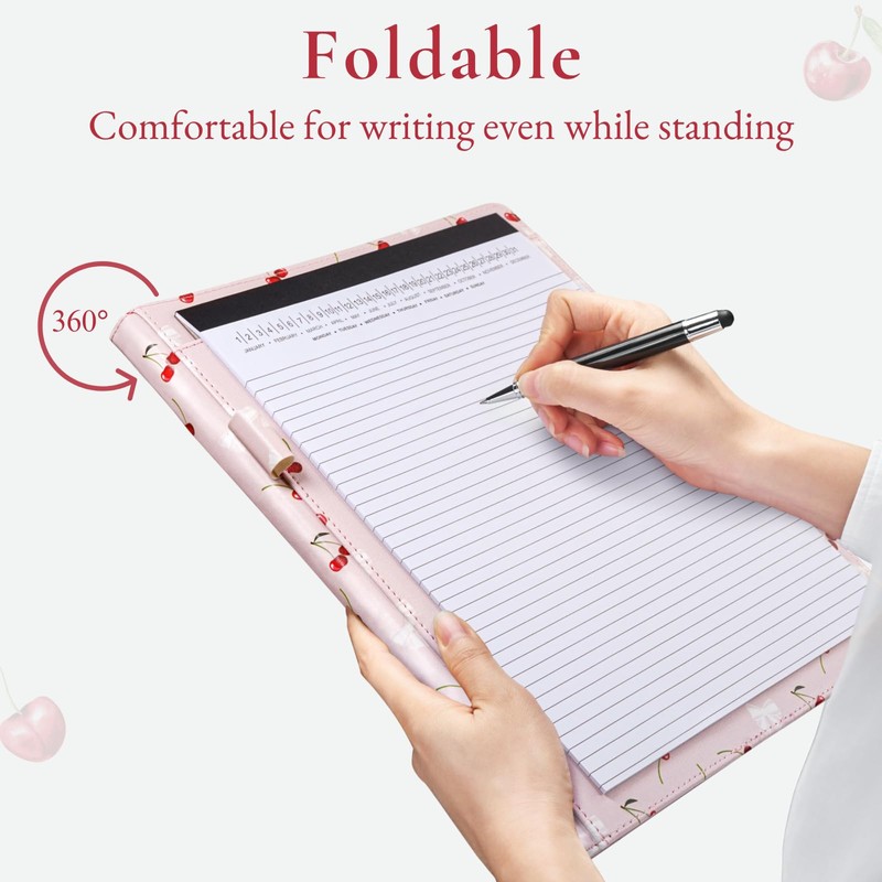 Mymazn Padfolio Portfolio Folder, Faux Leather Interview Resume Folder with Document Organizer & Business Card Holder, Letter-Sized Notepad Legal Pad Holder for Men Women Pink Cherry