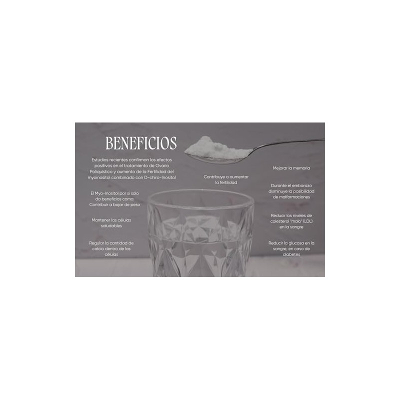 - COMPOSICIÓN DE LA MEZCLA. Cada suplemento contiene una mezcla óptima 40:1 de 2000 mg de Myo Inositol y 50 mg de D-Chiro Inositol con alta biodisponibilidad, lo que asegura una mejor absorción de los ingredientes.