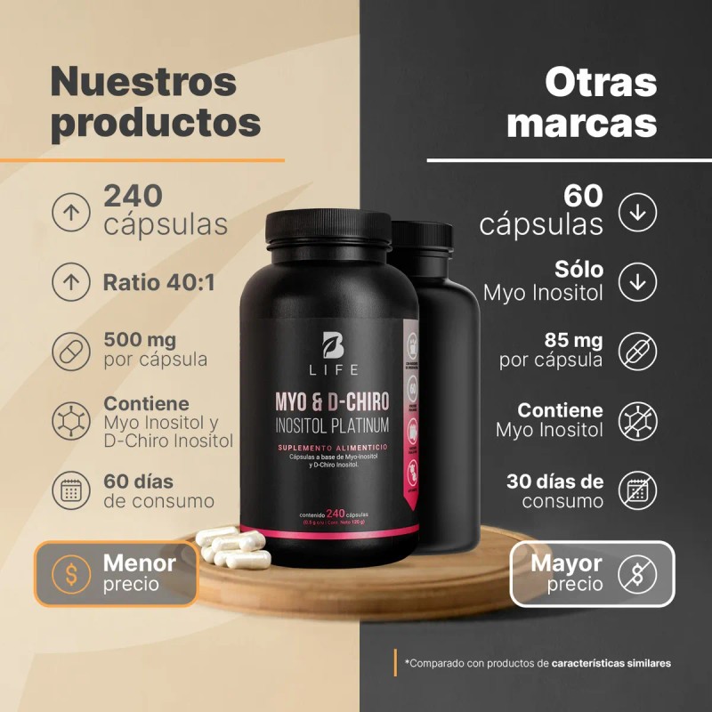 Myo Y D-chiro Inositol De 240 Cáps. Inositol Platinum B Life.