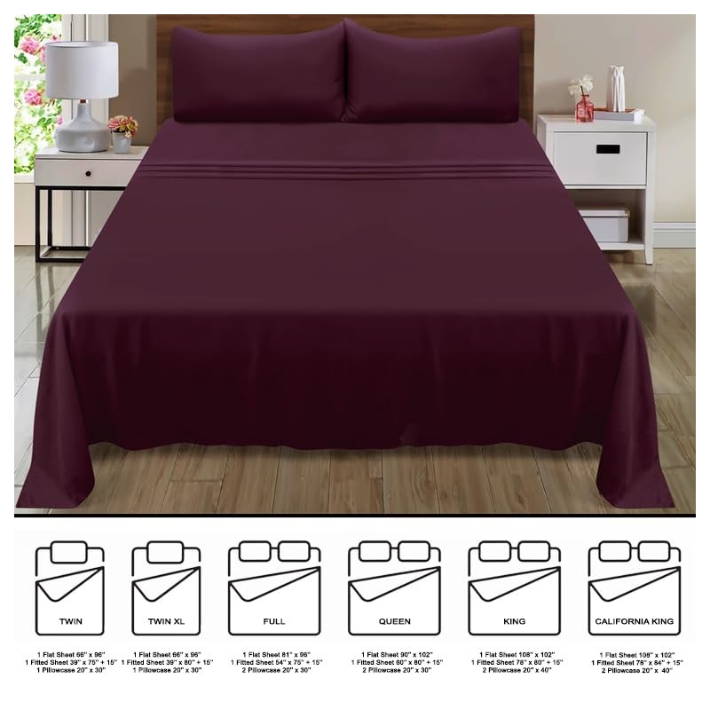MyOwn Queen Sheet Set - Double Brushed Microfiber Bedding Set Queen, 4 Piece Deep Pocket Queen Sheet - Ultra Soft, Easy-Fit, Wrinkle Free, Quick Dry, Easy Care Queen Sheets - Burgundy