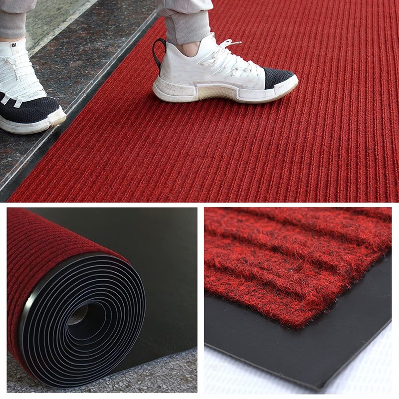- Double Stripes Carpet: Brush step entrance mat is designed with slightly raised polypropylene fabric, which will help to form a retention dam to trap moisture, mud or other messy unwanted debris from tracking into your home