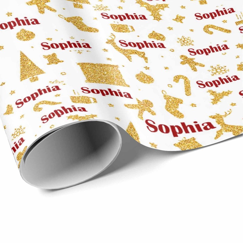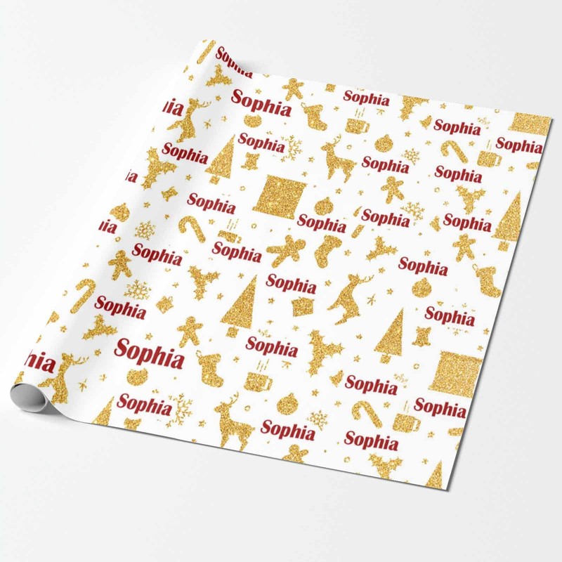 MyPupSocks Custom Christmas Wrapping Paper, Personalized Golden and Stars Stocking Wrap Paper with Name Customized Funny Wrapping Paper Roll for Men Women Christmas 58x23 Inches 3 Rolls
