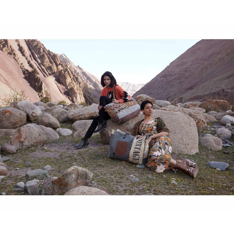 Myra Bag Western Leather Shoulder Bag for Women, Upcycled Canvas Weekender Bag - Rigaud Rail Express