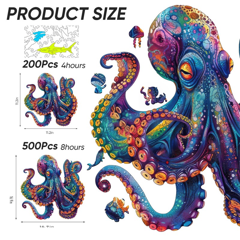 MYS A·U·R Wooden Puzzles for Adults,Octopus Wooden Jigsaw Puzzles 500pcs,16.9x16.9in,Royal,Unique Shape Ocean Adult Puzzles,Irregular Wood Puzzles Creative Gift for Adults and Kids Family Game