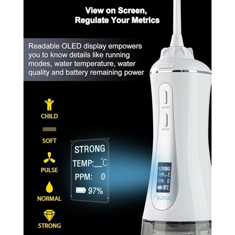 MySmile OLED Cordless Oral Irrigator Water Flosser 8 Jet Tips 5 Model White