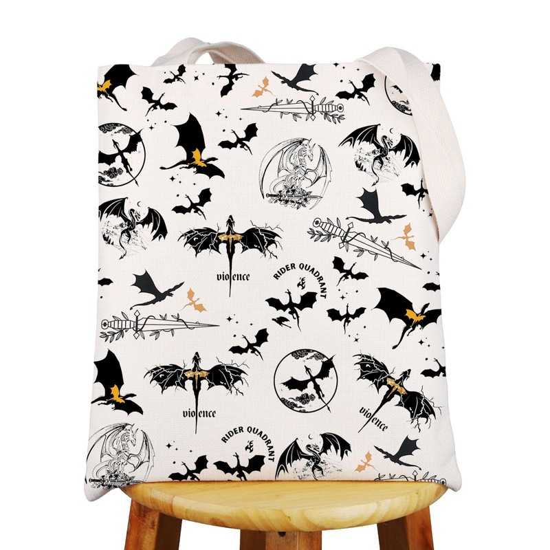 MYSOMY Fantasy Dragon Book Tote Bag Violet And Xaden Gifts Dragons Lover Shoulder Bag Basquiat War College Tote Bag (violence)