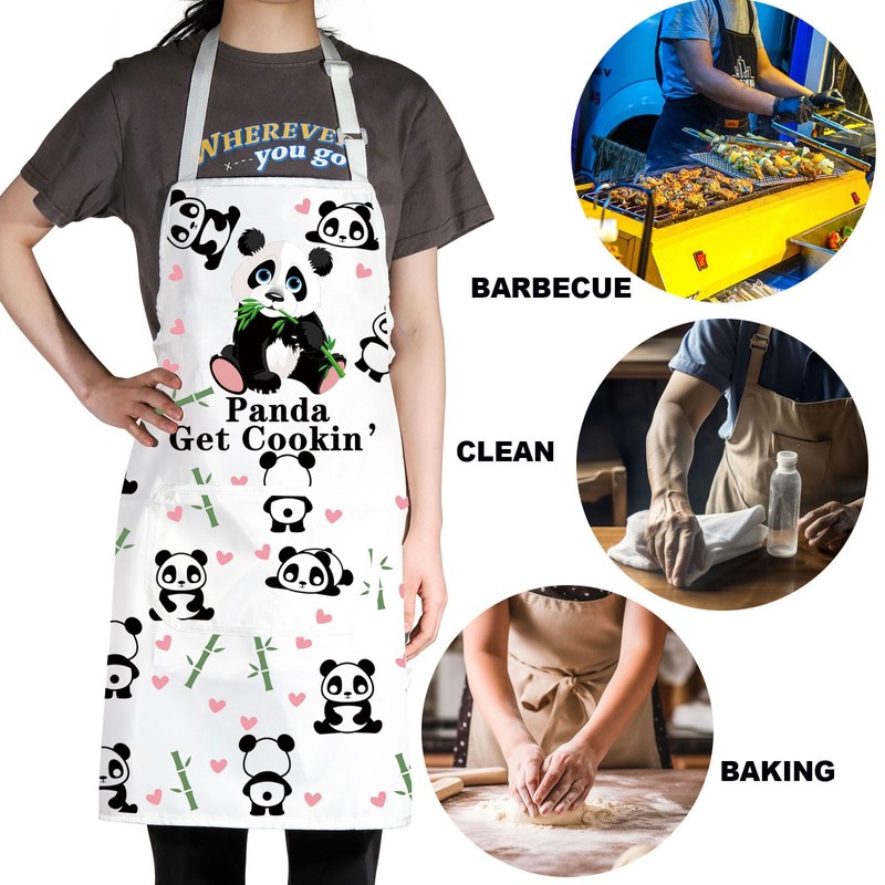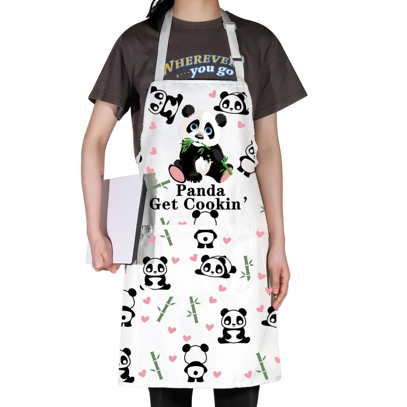 MYSOMY Panda Bear Apron Panda Cooking Apron Panda Lover Gifts Panda Get Cookin’ Apron Panda Chef Apron (Panda AP UK)