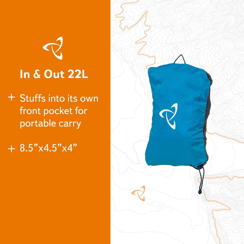 - Stuffs into its own front pocket (8.5”x4.5”x4”)