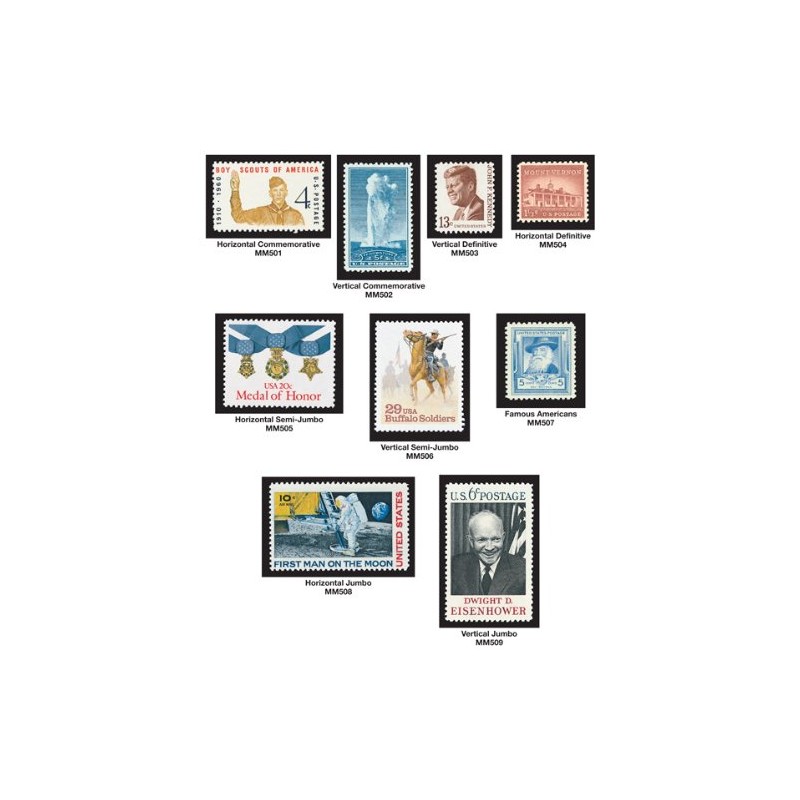 This stamp mount Value Pack contains one each of the following black, pre-cut, split-back mount packets: