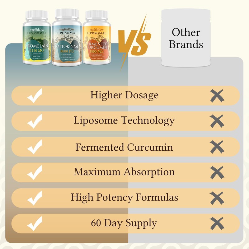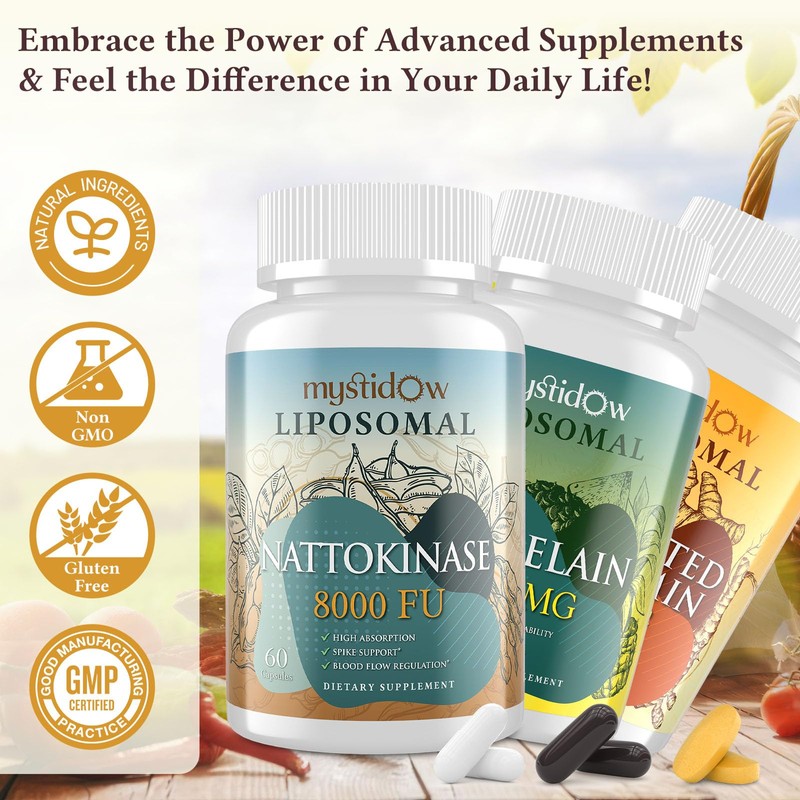 - ENHANCED BIOAVAILABILITY - Experience the power of liposomal technology! Our trio set – Curcumin, Bromelain, and Nattokinase – is uniquely formulated for superior absorption. Liposomes encapsulate the nutrients, ensuring optimal delivery for immune, Heart and Circulation.