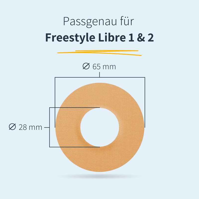 - Perfectly fitting plasters with easy application for Freestyle Libre sensors - Perfect hold due to plaster dimensions suitable for everyday use: outside Ø 65mm, inside Ø 28mm for perfect fixation of your sensor