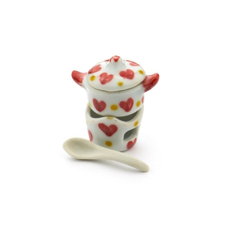 MyTinyWorld 2 x Dolls House Miniature Heart Pattern Ceramic Fondue Sets