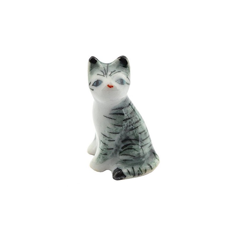 MyTinyWorld Dolls House Miniature Ceramic Light Grey and White Tabby Cat Sitting