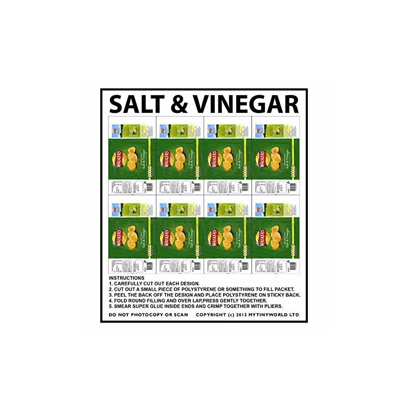 MyTinyWorld Dolls House Miniature Packaging Sheet of 8 Walkers Salt & Vinegar Crisps