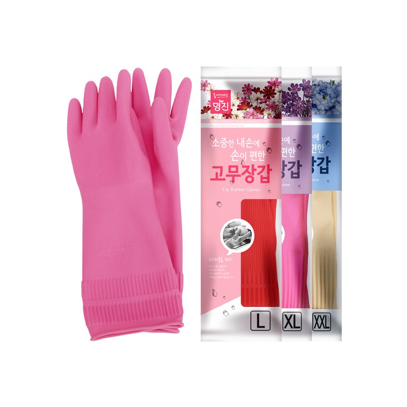 Myungjin 3 comfortable rubber gloves, medium/pink / 명진 손이편한 고무장갑 3개, 중/핑크