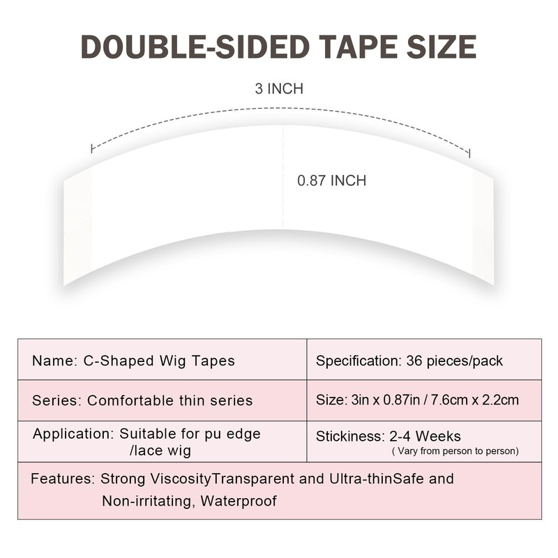 - Easy Application: MyWQQ Lace front wig tape each package includes 36 C-shaped wig tapes (3x0.87IN),Pre cut design, portable and easy to use, meets daily replacement, travel or professional styling needs.