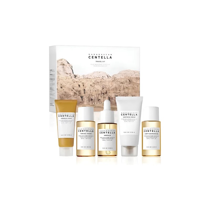 SKIN1004 Centella Madagascar Travel Kit, caja básica para el cuidado de la piel, suavizante y calmante,