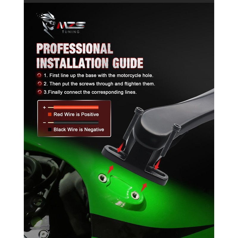 - Easy to install - First align the base with the holes of the motorcycle, then put the screws through, and finally tighten them. Then connect the corresponding lines. Red is Positive and Black is Negative