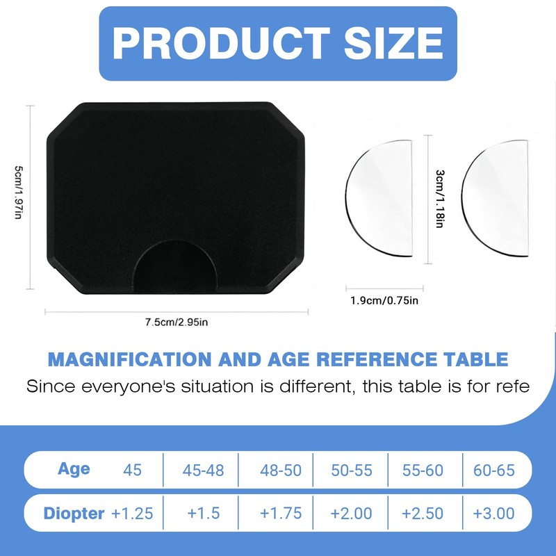 - 【Fit Any Shape or Style】2 Pack stick-on readers allow you to convert your sunglasses, safety goggles, or any glasses into magnifying reading glasses for close work. Undetectable bifocal lenses no one will even know you have them on. (Note: 2 Pack with 4 lenses)