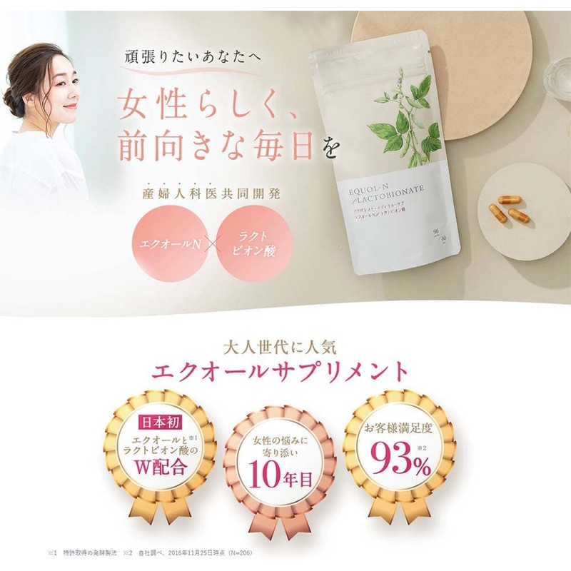 エクオール N/ ラクトビオン酸 (90粒×2 約2ヶ月分) サプリ【大人女性のお悩みに 女性らしさを保つ】 大豆イソフラボン ラクトビオン酸 配合 パウチタイプ 体内環境ケア 不調ケア 40代 50代 60代 女性 健康 サプリメント