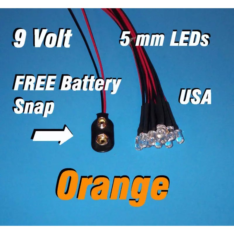 * 10pcs 9 Volt 5mm Orange pre wired LED's