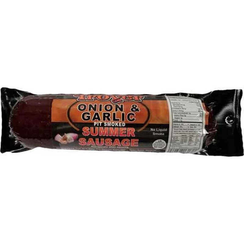 Troyer Summer Sausage Onion and Garlic is also versatile and easy to enjoy. It can be sliced and served as an appetizer, paired with crackers or cheese for a delicious snack, or used as a topping for pizza or sandwiches.