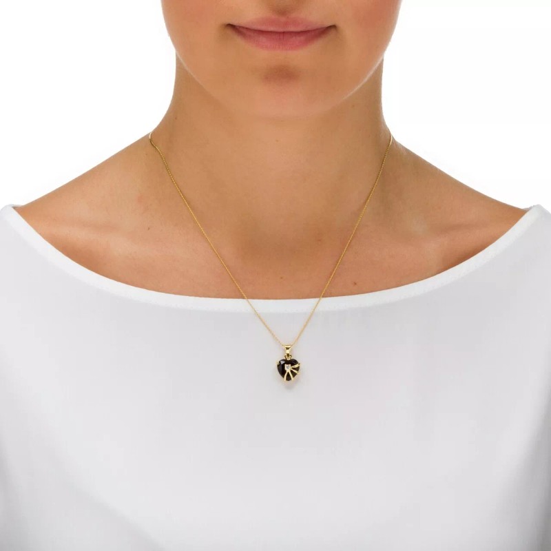 N/A WOMENS 14K GOLD PLATED ONYX BEAUTIFUL HEART SHAPE RING 5 6 7 8 9 10 AND PENDANT