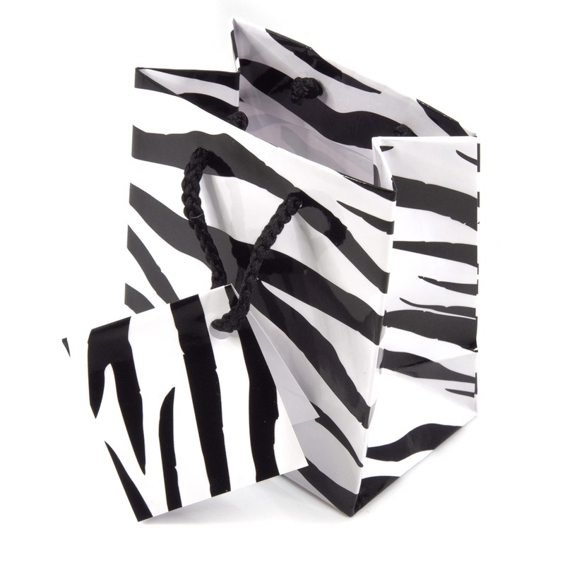 N N’icePackaging – 10 Qty – Zebra Paper Tote Gift Bags (3in x 2in x 3.5in) – For Birthdays/Holidays/Parties/Gifts/Sales/Showers/Special Occasions – 4 Sizes