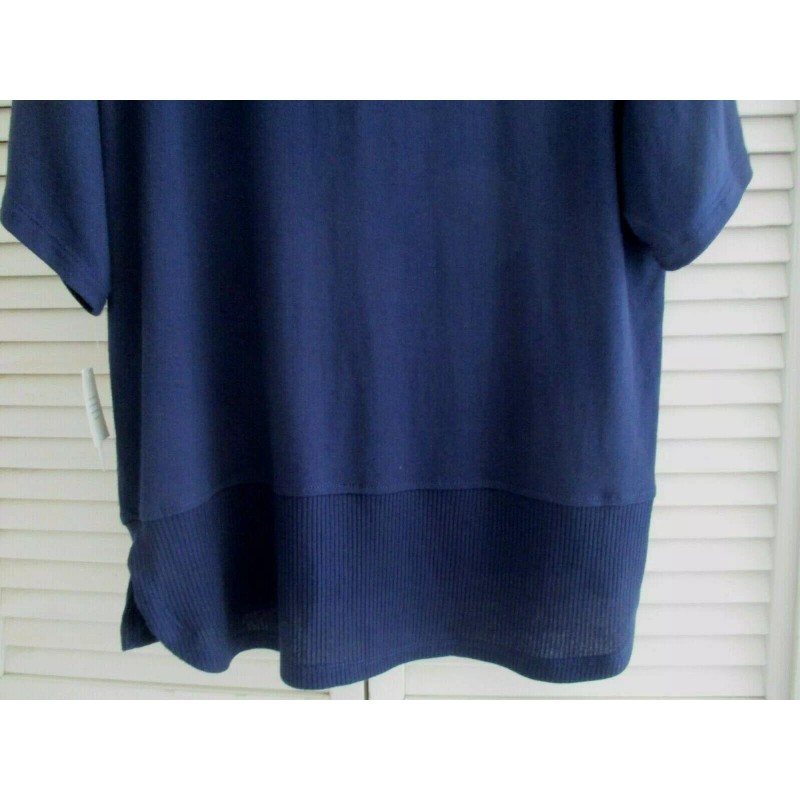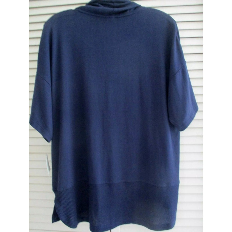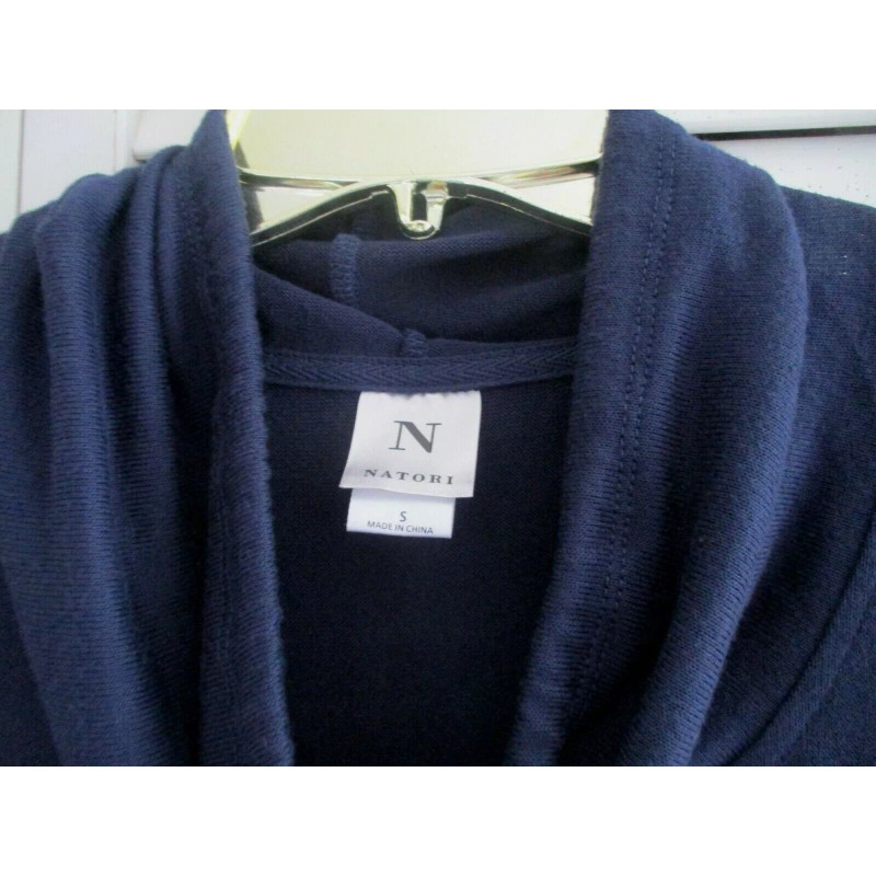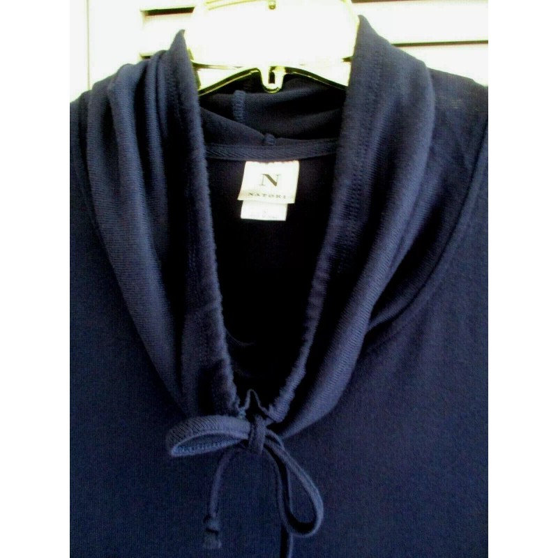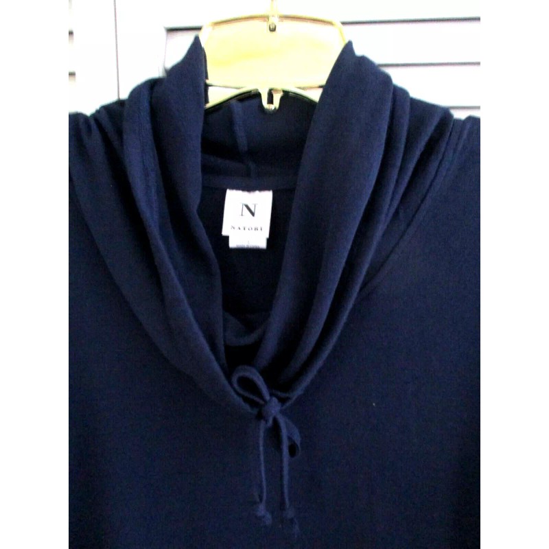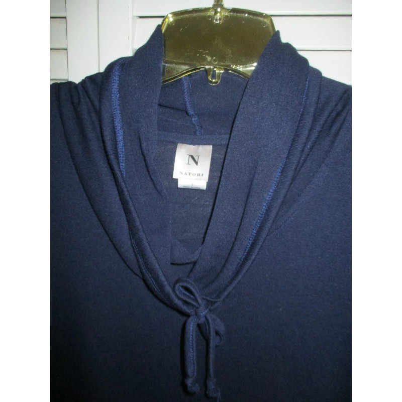 N.Natori N NATORI NTRANCE LOUNGE 24/7 TUNIC SHORT SLVE COWL COLLAR MIDNIGHT NAVY KNIT S