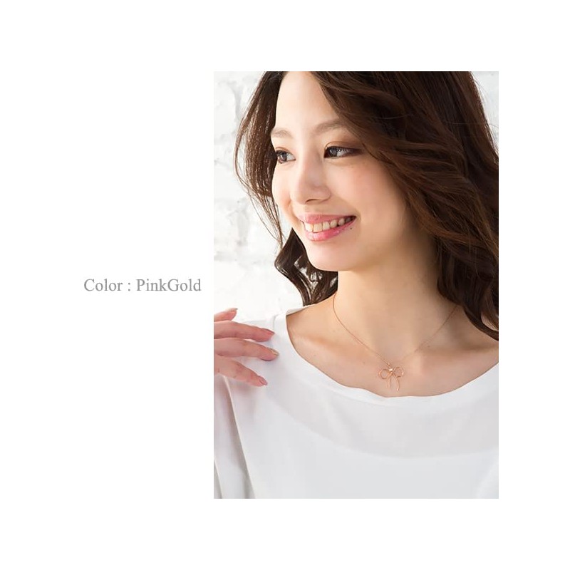[ジュエリーショップエム] 細線 手曲げ リボン ネックレス レディース ゴールド n0066-G