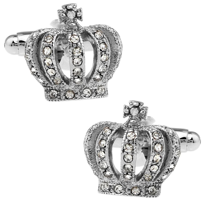 シルバー&クリスタル クラウン カフス カフスボタン カフリンクス n01597