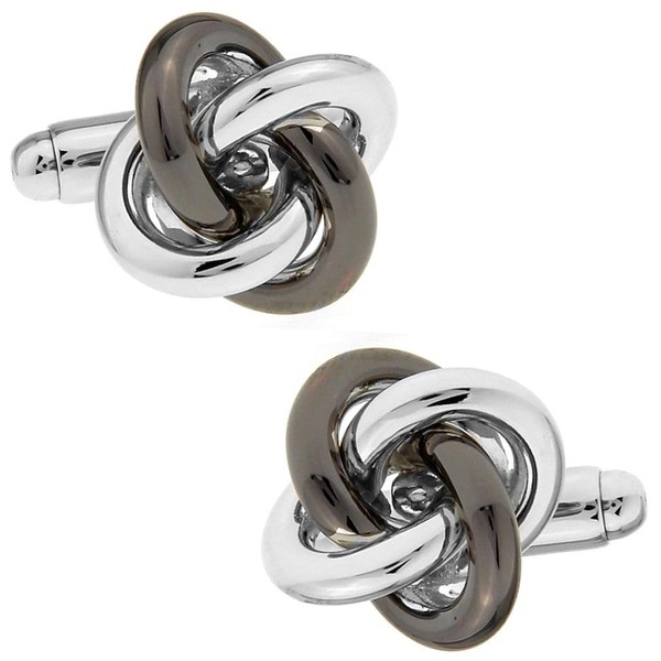 シルバー&ガンメタ ノット カフス カフスボタン カフリンクス n02097