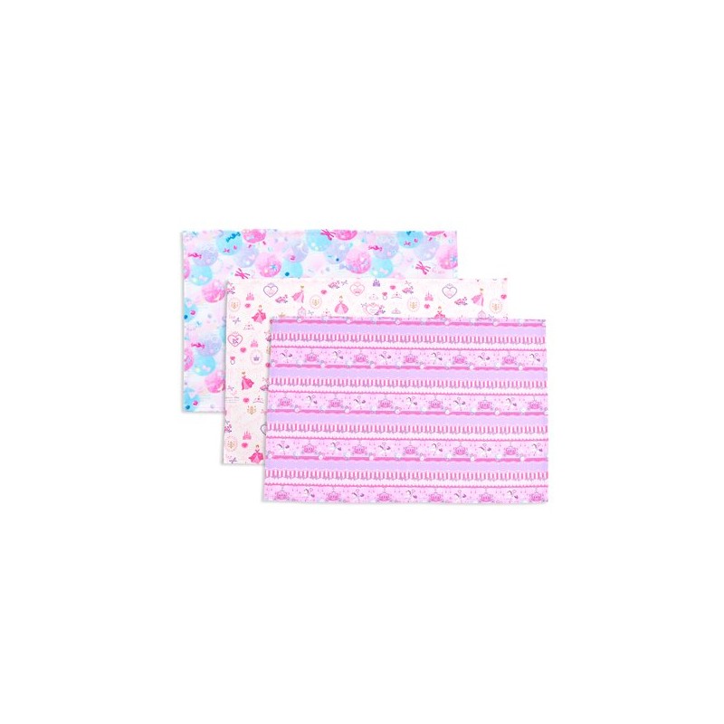 N3630123 Girls Children's Fabric Stylish Lunch Placemat, Cotton, Set of 3, Princess and Pastel Merry-Go Round Set, Colorful Candy Style