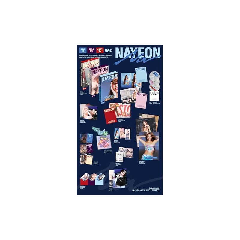 - After making her solo debut with IM NAYEON, which charted at #7 on the Billboard 200 - making her the first South Korean soloist to enter the chart's Top 10, NAYEON (TWICE) is back again with a new album titled `NA'! Contents of the album include CD, CD Envelope, Out Box, Postcard (random 1 of 3), Photo Book (88 pgs), Photo Card (random 4 of 15), Track Sticker Pack (8ea), Hang Tag (random 1 of 3), Folded Poster (random 1 of 3), Mini Book, Postcard Set and Poster
