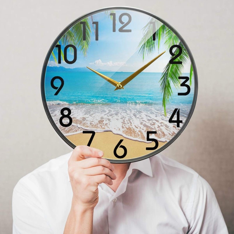 Naanle 3D Beautiful Summer Beach Ocean Palm Trees Print Round Wall Clock, 9.5 Inch Silent Battery Operated Quartz Analog Quiet Desk Clock for Home,Office,School,Library