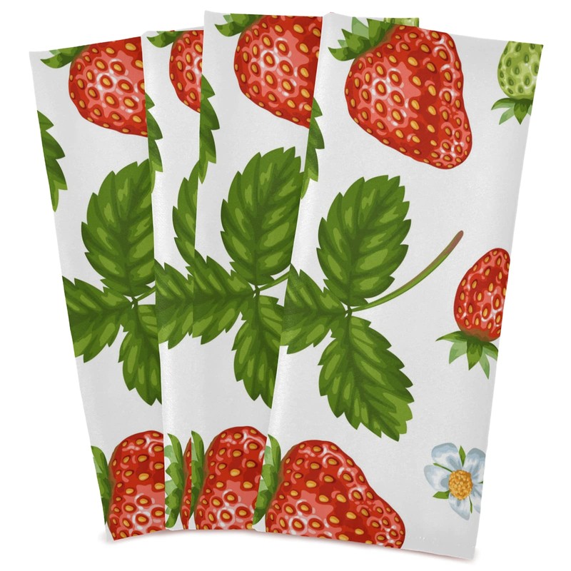Naanle Red Strawberries Flower Kitchen Towels 1 Pack Dish Cloths Reusable Cleaning Cloths Absorbent Hand Towels Tea Towels Bar Towels Fast Drying 28 x 18 in