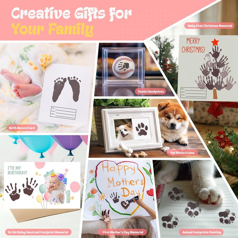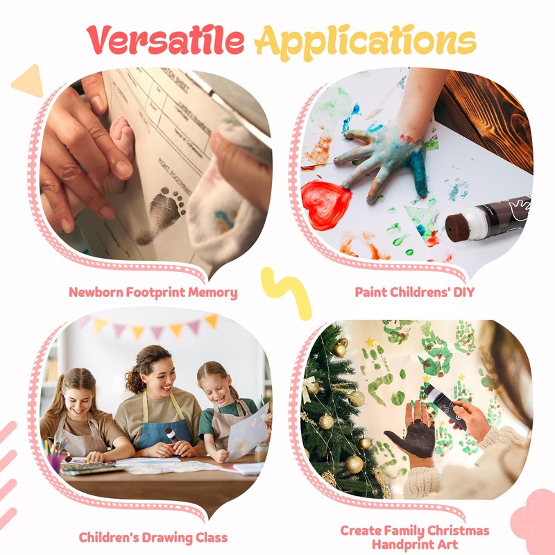 - 【PERFECT GIFT & WIDE APPLICATION】Multiple uses, can make baby milestone cards, footprint souvenirs, baby books. The paint tube can be used as a brush for coloring games, graffiti, painting, and DIY greeting cards. It is a perfect gift for new parents, babies, children, pet owners on Christmas, New Year, Halloween, Easter, Children's Day, birthdays, Father's Day, Mother's Day, allowing them to have a unique creative experience and make precious souvenirs.