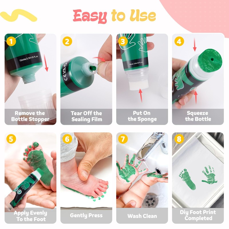 - 【PERFECT GIFT & WIDE APPLICATION】Multiple uses, can make baby milestone cards, footprint souvenirs, baby books. The paint tube can be used as a brush for coloring games, graffiti, painting, and DIY greeting cards. It is a perfect gift for new parents, babies, children, pet owners on Christmas, New Year, Halloween, Easter, Children's Day, birthdays, Father's Day, Mother's Day, allowing them to have a unique creative experience and make precious souvenirs.