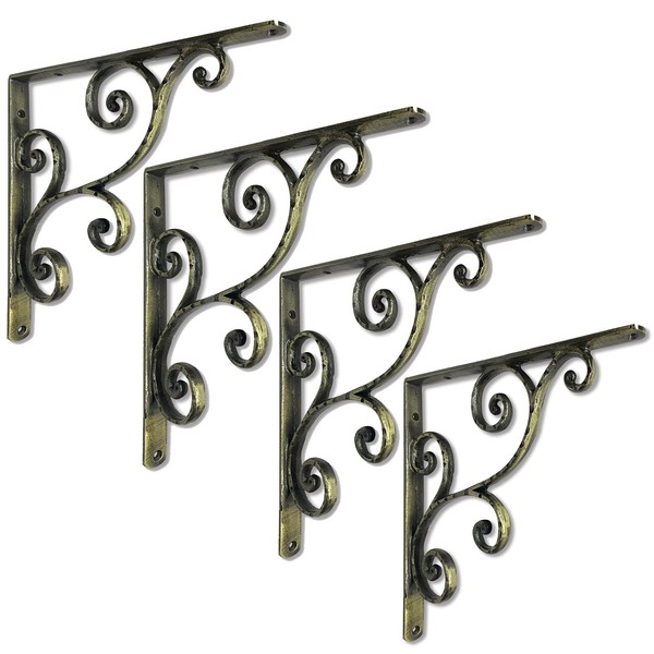 NACH Victorian Hammered Bronze Cast Iron Shelf Brackets 6 inch, Heavy Duty Shelf Brackets for Wood Shelves, Decorative Shelf Brackets, Bronze Shelf Brackets, 2-Pack Floating Shelf Brackets, JS-90-071