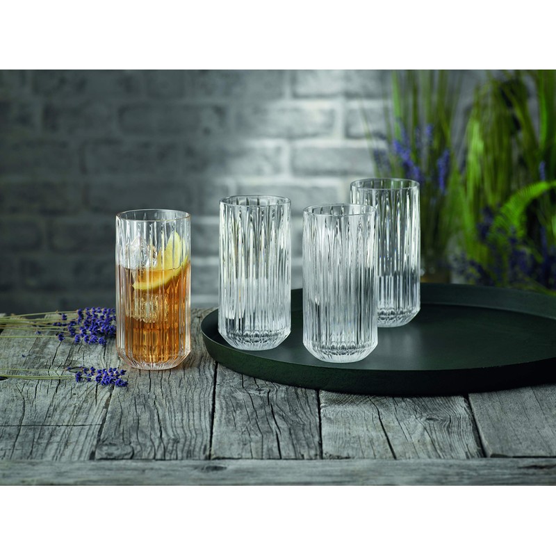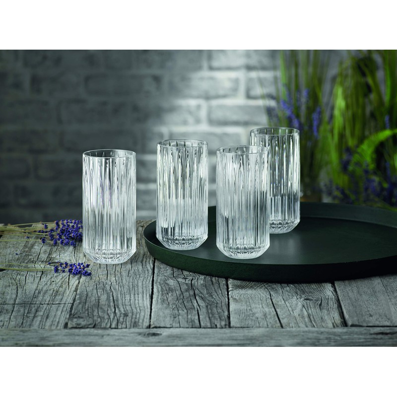 This set contains of 4 pieces of the nachtmann Jules long drink. The long drink glasses are perfect for serving water, Soft drinks, or cocktails alone or in combination with the pitcher. Uncomplicated enjoyment and sociability are the credo of the Jules crystal glasses. They give a feeling of summer heat and transport us directly into the landscapes in which the lavender flowers bloom and the grapes ripen. As all nachtmann crystal this item is dishwasher safe. As all nachtmann crystal this item is dishwasher safe.