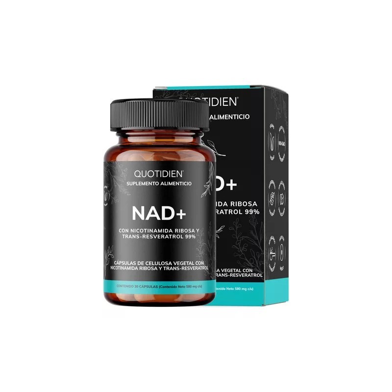 NAD con Trans-Resveratrol y Ácido Alfa Lipoico, una fórmula avanzada diseñada para respaldar tu vitalidad y bienestar diario de manera efectiva. Esta combinación premium ofrece una sinergia potente en cápsulas veganas de alta calidad, perfectas para quienes buscan un apoyo integral para su estilo de vida activo.