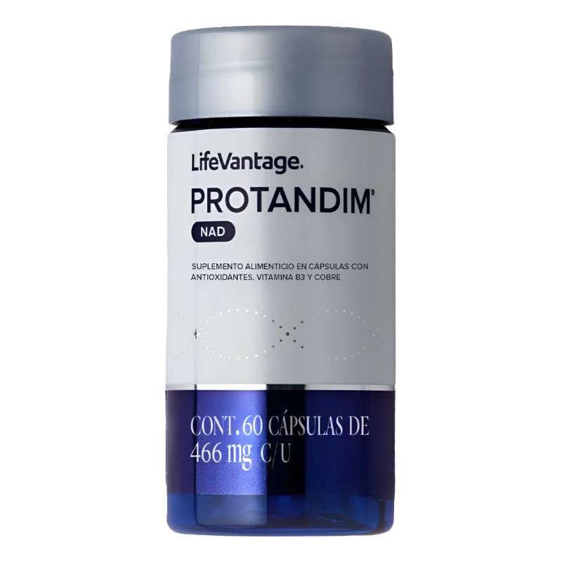 NAD Protandim de LifeVantage es un suplemento diseñado para potenciar la salud celular y promover el bienestar general. Cada cápsula contiene una fórmula única que apoya la producción de antioxidantes en el cuerpo, ayudando a combatir el estrés oxidativo y a mejorar la función celular. Este producto es ideal para personas que buscan mantener su energía y vitalidad a lo largo del día.