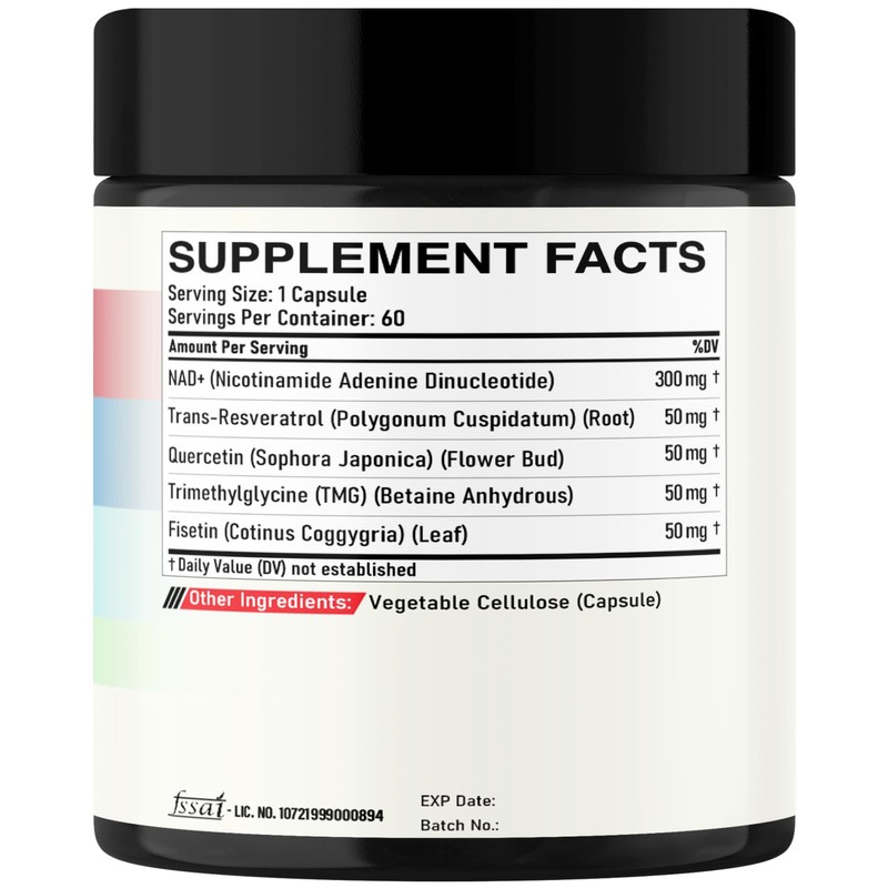 - 💚 Professional Combinations - A Blend of 3 potent ingredients, including NAD+ 300mg, Fisetin 50mg, Trimethylglycine 50mg, Trans-Resveratrol 50mg & Quercetin 50mg; A smart choice for those looking to prioritize long-term wellness.
