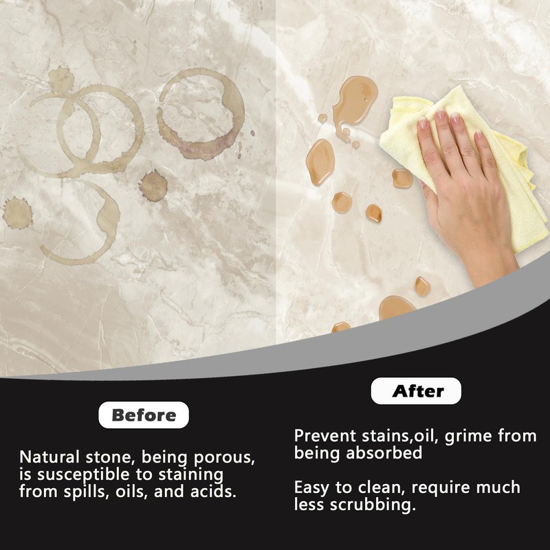 - Seal & Protect. Creates a barrier on the surface to prevent stains, oil, water, coffee, wine and other substances from damaging or discoloring your precious stone surface. Protects Kitchen Countertops, Sinks, Showers, Vanities & Floors From Stains.
