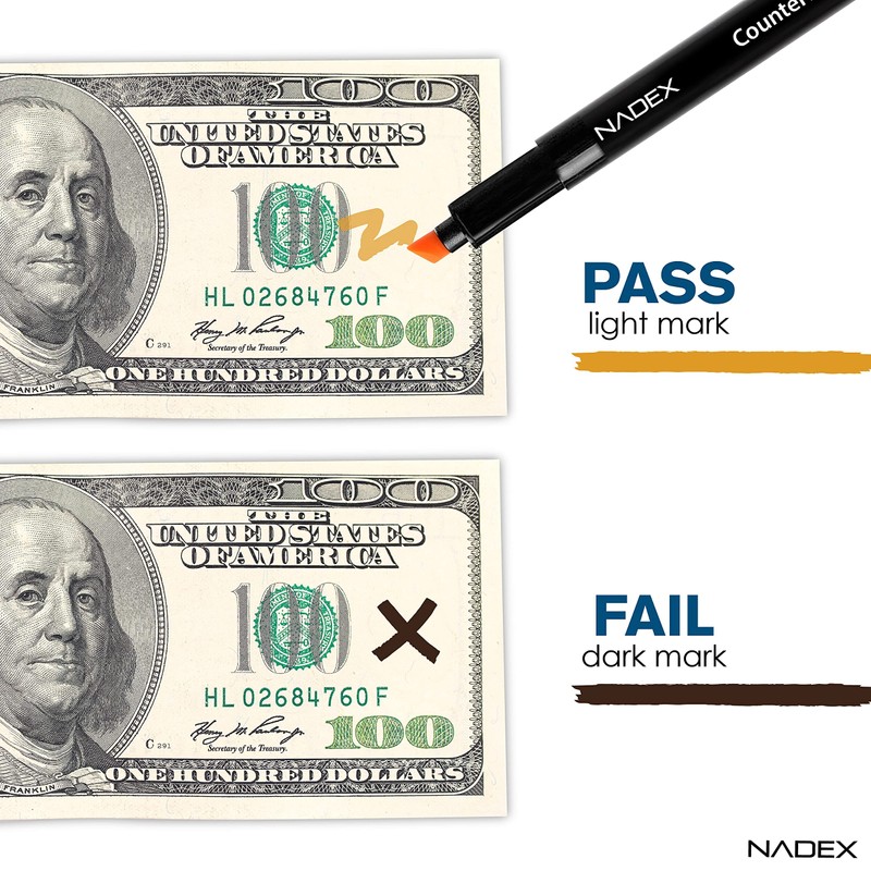 Nadex Counterfeit Pen, Easy Swipe - Gold for Real, Black for Fake, Detect Counterfeit Bills (1 Pack)