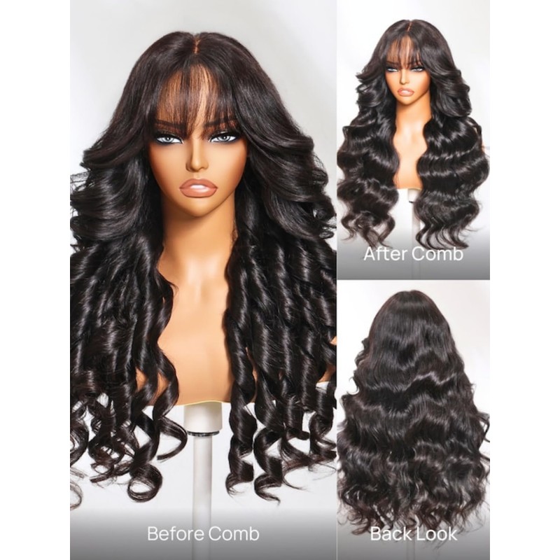 | Color: | 7x5 HD with Drawstring|Fluffy Curtain Bangs|Black Color Wig |
