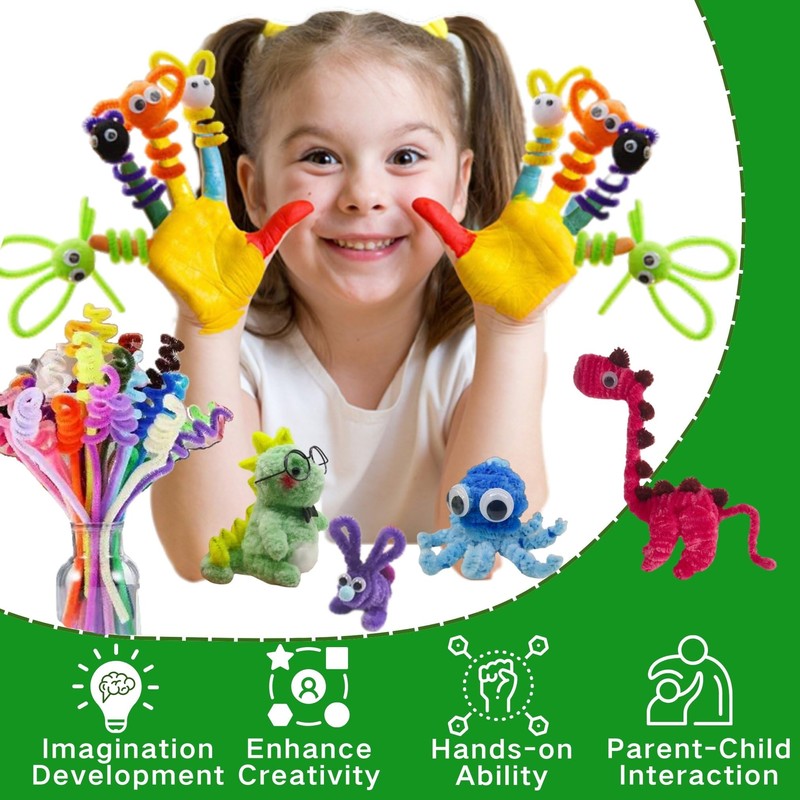- Endless Fun: Let your creativity shine by twisting the pipe cleaners into all sorts of shapes,like animals,fruits,flowers.Enjoy the joy of crafting while enhancing your creativity and hands-on skills.