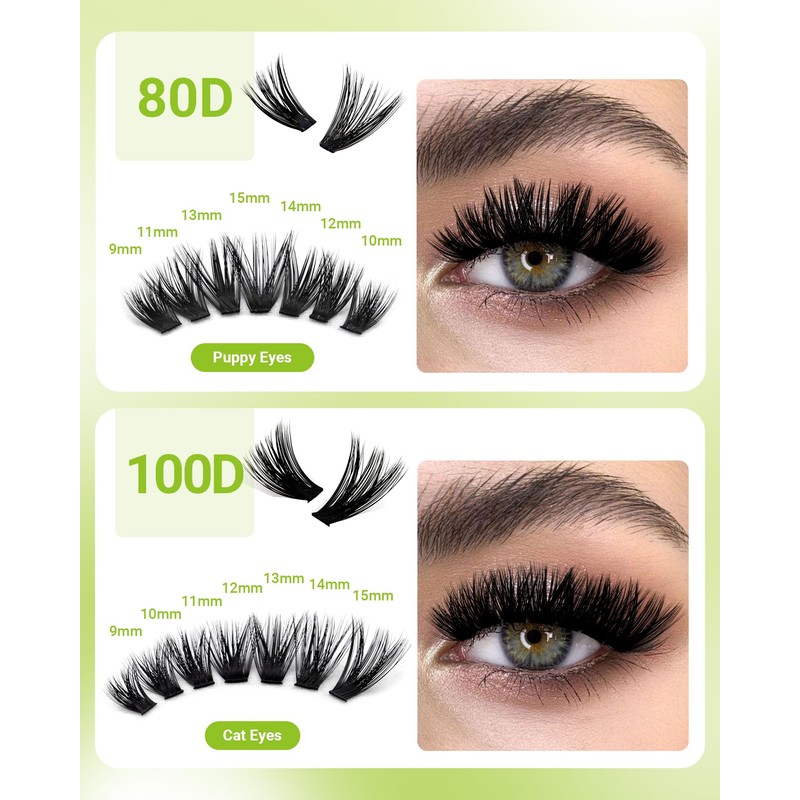 - Multiple Styles Depend on You: The individual cluster lashes are great for a natural look or glam look. You can create a customizable lash look with our individual lash clusters from different lengths and volume like natural style, volume style, mega volume style, cat eye style ect. The cluster lashes pack is versatile and can be used for a variety of occasions, be it a night out with friends, a special occasion, or even a day at work