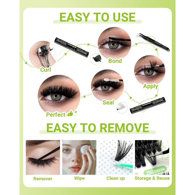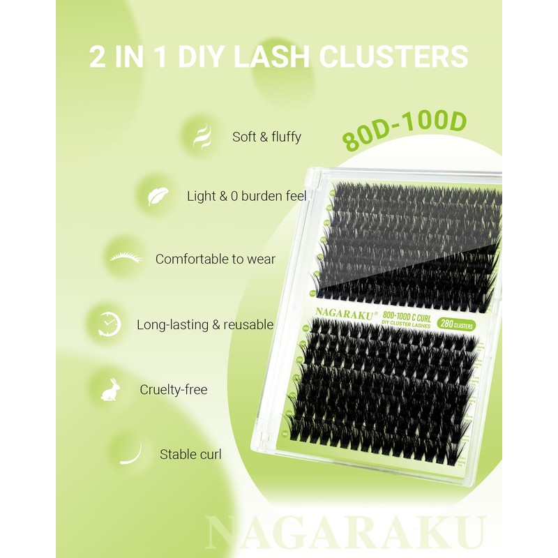 - Premium Cluster Lashes Fibers: NAGARAKU lash clusters are made with the finest updated PBT materials to ensure softness, thickness, durability and longevity, designed to give you fuller lashes that look more natural than traditional false eyelashes. The DIYlash clusters can be used 7-8 times with the proper care and cleaning